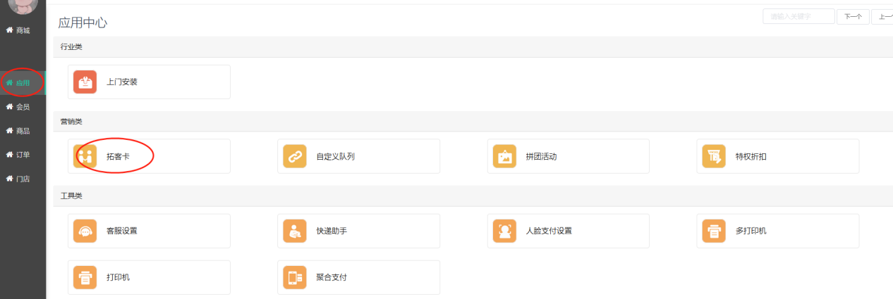 第五步:打开应用——营销类——拓客卡——拓客卡管理——添加拓客卡