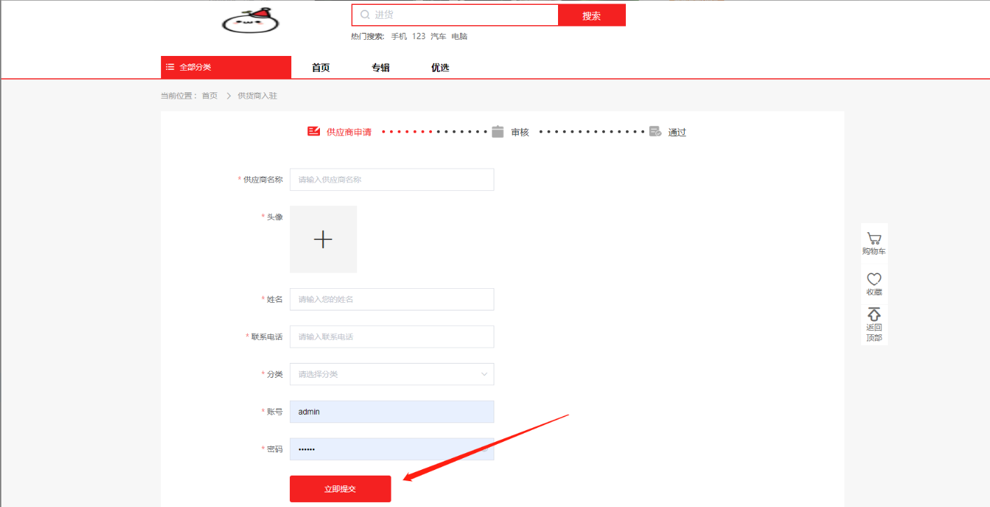 填写下图所有内容(如果分类没有可以选择的请联系管理员),然后点击提交等待管理员审核即可;