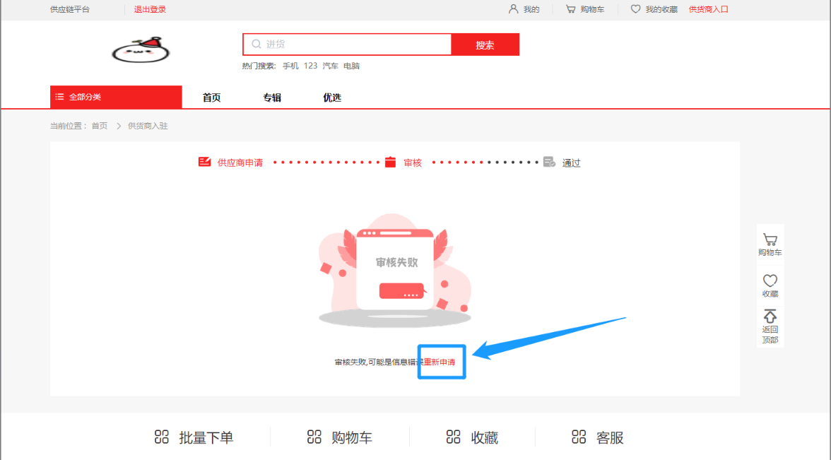 可点击图中升级成为供应商或者点击右上角供货商入口进行申请。
