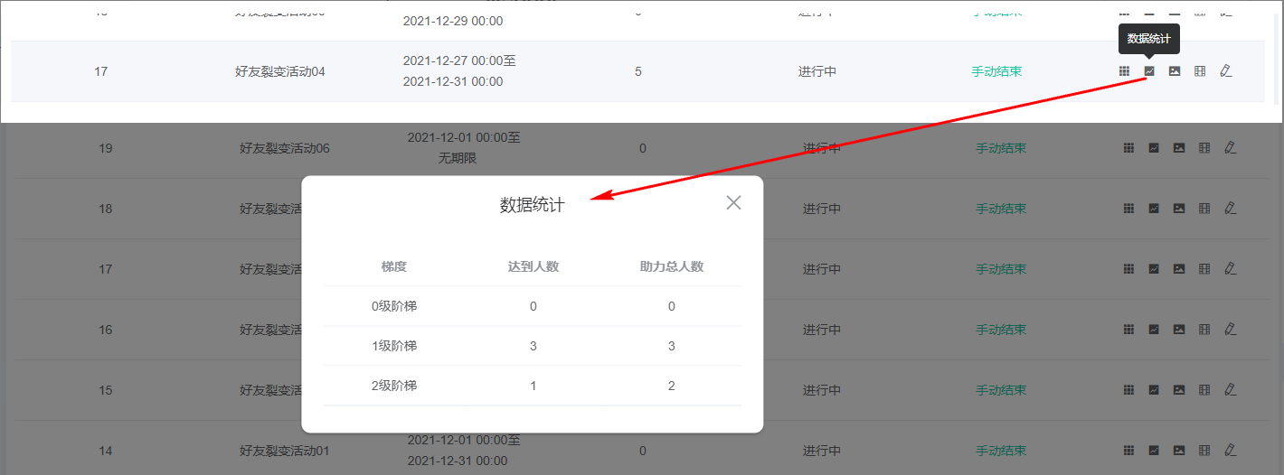 可查看设置的各个阶梯达到、助力人数;0级阶梯代表还未达到1级阶梯